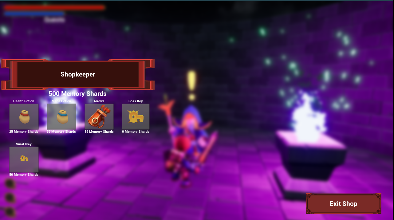 I added the final UI art to the shop this week, including audio, graphics, credits menu, and player stats HUD. The hover and pressed UI to the audio, credits, and graphics button. I was also helping Mike fix the shop bug. Each menu needed a new background and buttons. I changed the shop UI to also match the rest of the game. The shop bug was that the shop items were not appearing in the shop. Mike figured out that we needed to just delete and re-add the shop NPC to make the items appear again.